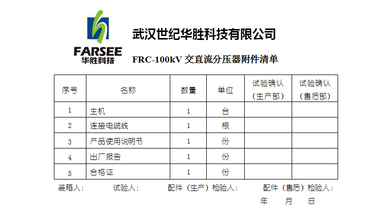 分壓器(千伏表)是高電壓試驗(yàn)中必備的測(cè)量設(shè)備,它能將高電壓轉(zhuǎn)換為可用普通電壓表測(cè)量的安全低電壓,其測(cè)量準(zhǔn)確性、直觀性及使用方便性是傳統(tǒng)測(cè)量高電壓采用的靜電電壓表、測(cè)量球隙等所無法比擬的。華勝FRC系列高電壓分壓器(千伏表)測(cè)量準(zhǔn)確、使用方便安全,符合國(guó)家新頒布電力行業(yè)標(biāo)準(zhǔn)《高電壓分壓器測(cè)量系統(tǒng)通用技術(shù)條件 DL/T 846.1—2004》要求。